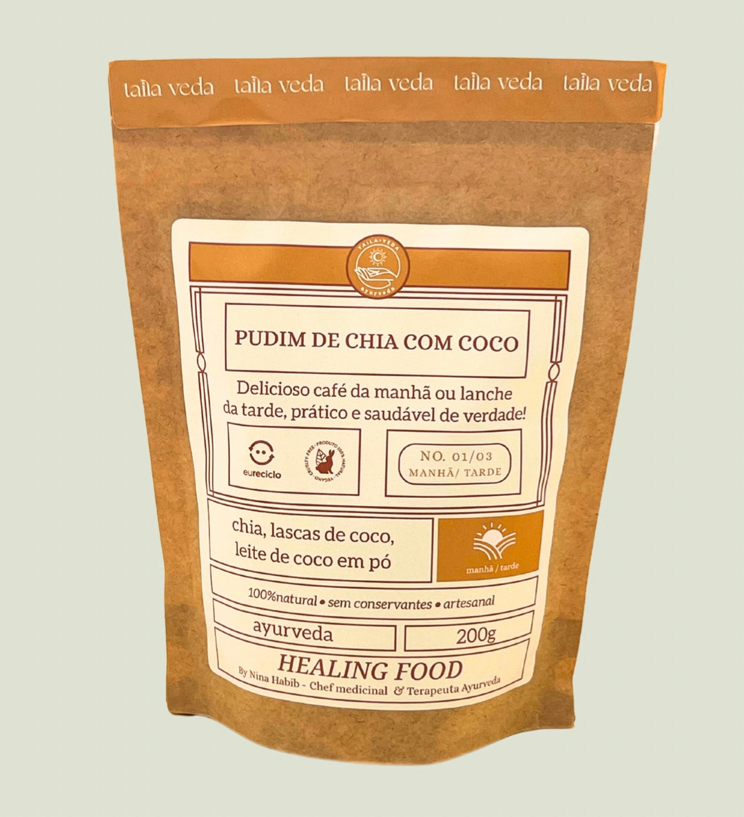O Pudim de Chia com Coco Taila Veda é uma opção deliciosa e nutritiva para o seu café da manhã. Uma combinação perfeita de sementes de chia, lascas de coco e leite de coco em pó cuidadosamente preparada para proporcionar uma experiência saborosa e saudável.